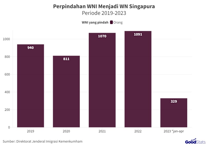 Disisi Lain Berdasarkan data yang dihimpun Direktorat Jenderal Imigrasi Kementerian Hukum dan Hak Asasi Manusia (Kemenkumham), jumlah perpindahan WNI menjadi WN Singapura periode 2019 hingga April 2023 sebanyak 4.241 WNI. “WNI yang berpindah kewarganegaraan menjadi Warga Negara Singapura tersebut berada dalam kelompok usia produktif 25-35 tahun,”